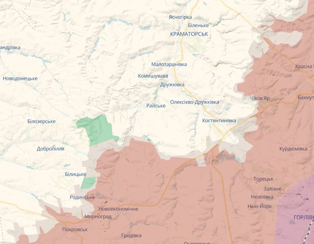 При этом российская армия продолжает продвижение на отдельных направлениях — например, западнее г.Гуляйполя в районе населённого пункта Железничное в Запорожской области, а также западнее н.п.Поддубного в Донецкой области (южнее н.п.Ивановки), а также в районе Покровска (район Гришино) и в районе Славянско-Константиновской агломерации и Лимана в Донецкой области.